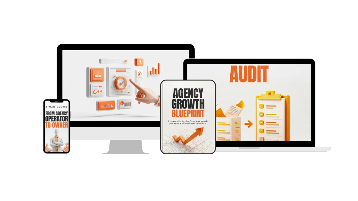 The core framework. 78 pages. The step-by-step playbook that covers everything from breaking out of the Operator Trap to building a predictable revenue system. Chapters cover your operating system, SOPs, team accountability, client acquisition, pricing, KPIs, and a 90-day quick-start action plan. This is the foundation everything else builds on.